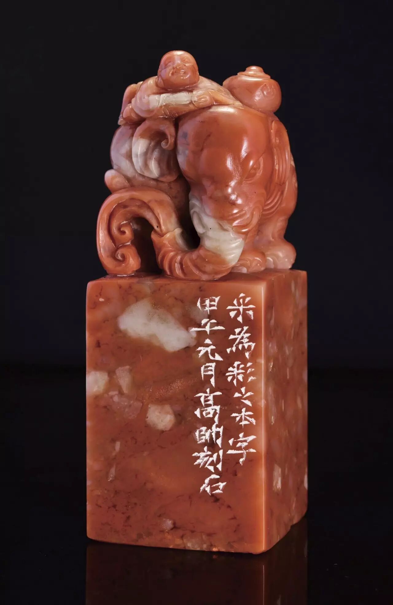 边款:“采”为“彩”之本字。甲午元月,高帅刻石。