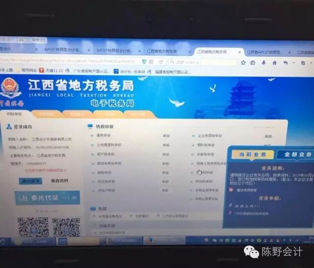 陈野会计真账教育研究院与会计乐技术提供方携手研发的江西省国地税纳税申报财税实训系统!