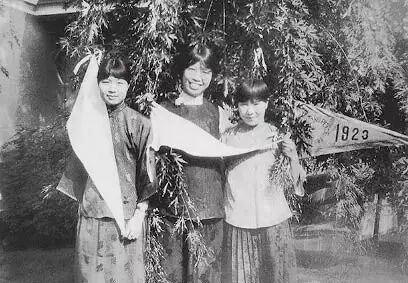 ▲1923年,冰心(右)与燕大同学陶玲(中)、陈克俊(左)