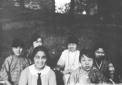 ▲1923年10月14日,冰心(左一)与同学们在威尔斯利女子大学合影