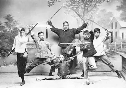 ▲少年习武,意气风发。冰心的三个弟弟与朋友们练习武术。