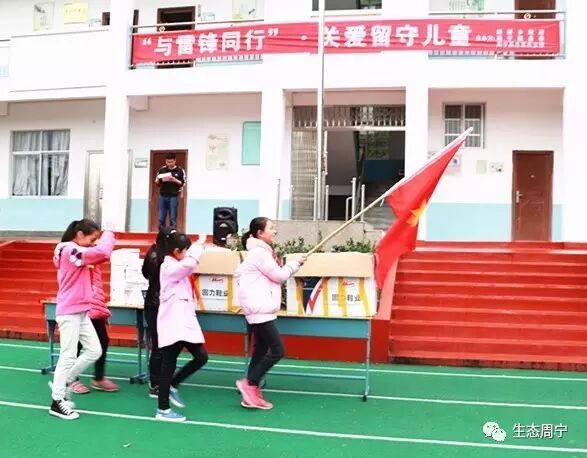 为大力弘扬友善互助、守望相助的社会风尚,3月21日,,慰问留守儿童”主题活动,给该校79名留守儿童及经济困难学生带去鞋子和袜子等慰问品,同时,带领该校学生共同清理河道两侧垃圾。