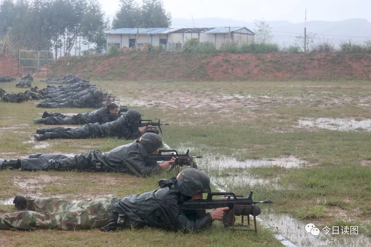 ↑3月23日,参加“魔鬼周”极限训练的武警广西总队崇左支队特战官兵在几百公里外柳州地区宿营地开展实弹射击训练。