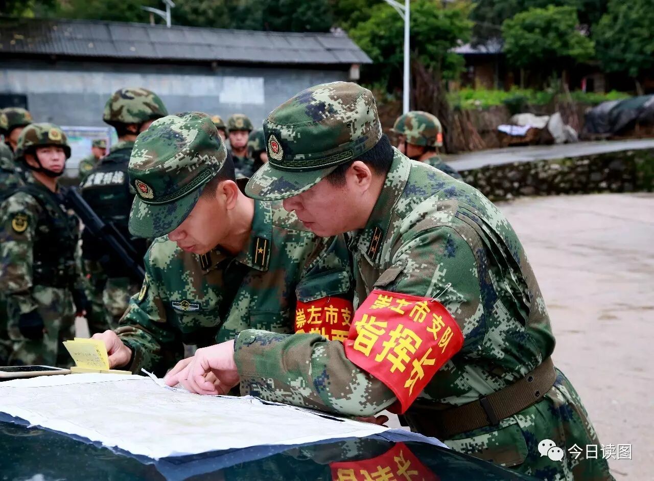 ↑3月21日,参加“魔鬼周”极限训练的武警广西总队崇左支队特战官兵在几百公里外柳州境内宿营地进行识别地域。