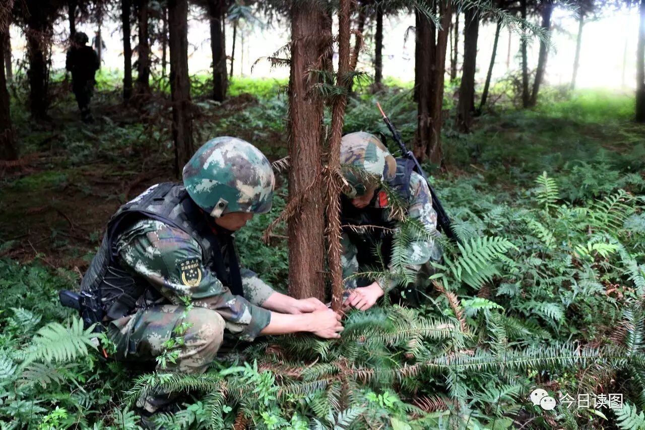 ↑3月21日,参加“魔鬼周”极限训练的武警广西总队崇左支队特战官兵在几百公里外柳州地区山林地内进行搜索侦查。