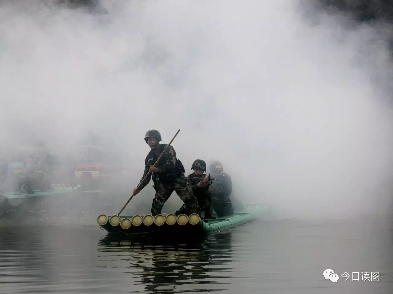 ↑3月21日,参加“魔鬼周”极限训练的武警广西总队崇左支队特战官兵在几百公里外柳州境内陌生地域下进行武装渡江。