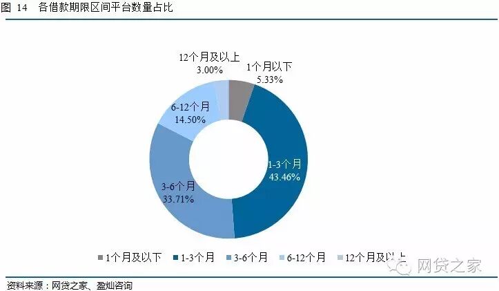 从P2P网贷平台平均借款期限的分布上看,八成以上的平台平均借款期限在半年以内。其中1-3个月区间的平台占比为43.46%,环比下降了0.26个百分点;3-6个月区间的平台占比为33.71%,环比上升了0.86个百分点。半年期以上平台占比仍较少,为17.50%,其中6-12个月区间的平台占比为14.50%,环比下降了0.10个百分点。