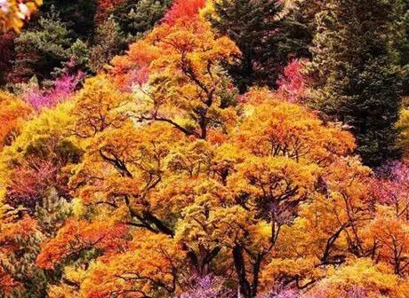 川西这片土地,有太多世界级的风景了,何必去日本看红枫,不如秋日来四川米亚罗——中国最大的红叶观赏区,看三千里红叶。每年10月开始,杂谷脑河谷两岸密林中的枫树、槭树、桦树、鹅掌松、落叶松等渐次经霜,树叶被染成为绮丽的鲜红色和金黄色。这一片3000余平方公里的金黄,与蓝天、白云、山川、河流构成一幅醉人的金秋画卷。