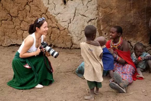 她去南非一些相对原始的地方,如同真正回归了自然一样,江一燕可以和当地的土著打成一片。