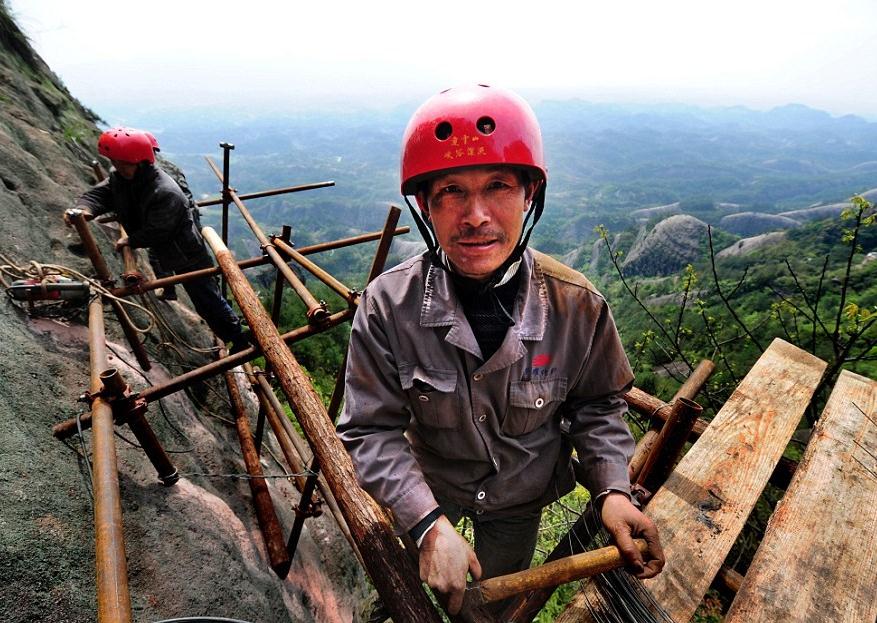 打眼工和搭架工是栈道工种中危险系数最高的。
