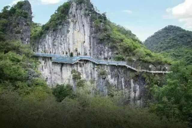 去年11月开工的融安石门仙湖景区玻璃栈道,投资400万,全长366米,是目前广西最长的玻璃栈道。玻璃栈道宽1.6米,高88米,,站在上面就可以清楚地看到脚底下的万丈深渊和独特风景。目前,融安石门仙湖景区玻璃栈道已经进入玻璃铺设阶段,计划于3月30日(农历三月初三)正式迎客。(见以下视频)