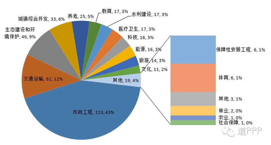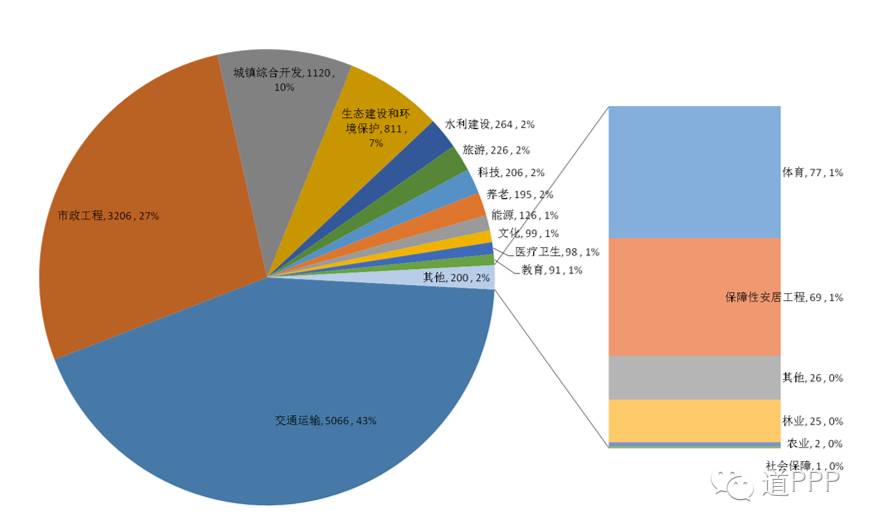 第三批示范项目共覆盖了58个二级行业,现对项目数和投资规模占比最多的前三类一级行业做具体分析。
