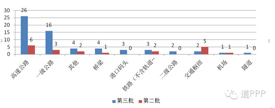 图10 第三批与第二批示范项目交通运输类项目数量对比