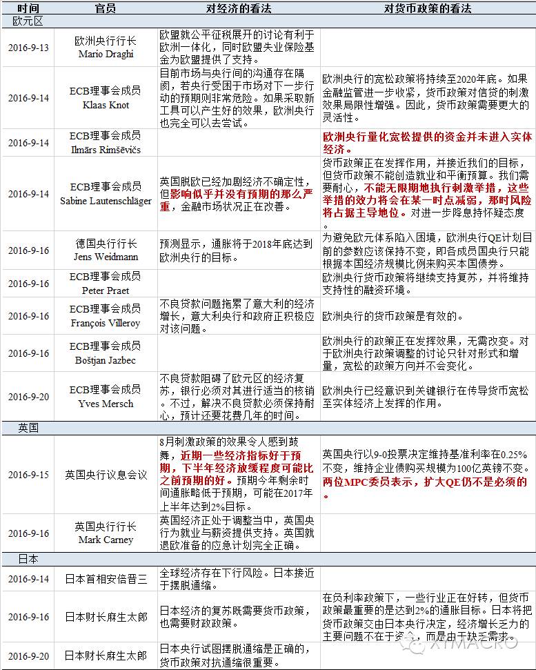 近期欧央行官员表示英国退欧所产生的影响低于预期,宽松的货币政策不能无限持续。这种表态可能暗示欧央行对量化宽松的效果有所反思。近期英国央行宣布维持利率与资产购买规模不变。委员们认为经济增长放缓的程度低于预期,刺激政策的效果好于预期,其中两位委员表示扩大QE并不是必须。而这意味着如果英国经济不出现明显恶化,宽松的力度可能不会加码。