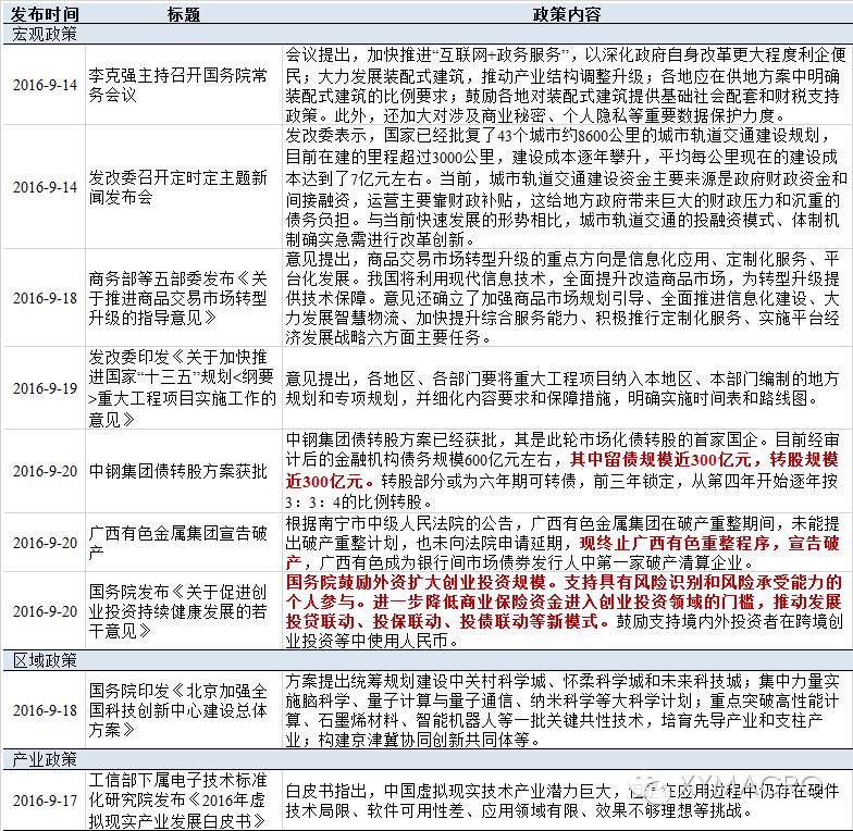 红色:本周有偏宽松的政策;蓝色:本周有偏紧缩的政策;黄色:本周有改革转型的政策;灰色:本周无重大政策。