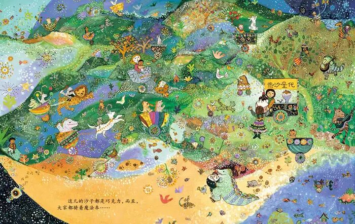 本书画作精美,点状构图多,作者以点绘代替纯线条,显得柔和而充满诗意。每一幅图呈现出多元的色彩、丰富的几何图形,不同的描绘手法,创造出一种魔法般的轻快氛围。