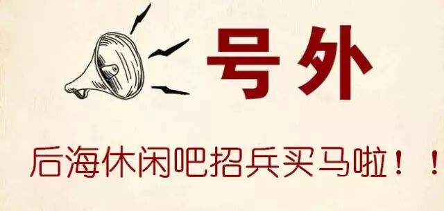 后海休闲吧招募新成员啦!快快成为我们的小伙伴吧!