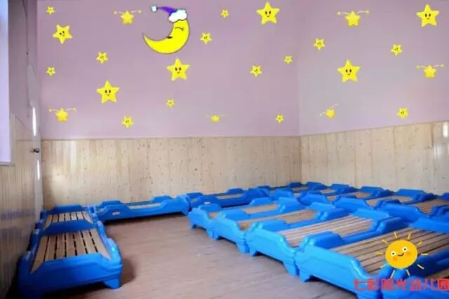 ▲温暖、宽敞的寝室,可以让每个孩子在这里安心午睡。