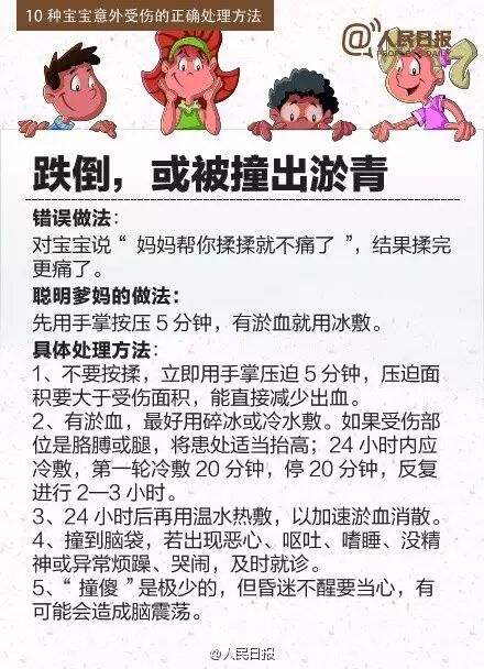 还有一些家长,孩子头部磕了,会下意识地揉一揉,其实这样做是不正确的,伤口处理不当,还会让孩子遭受更大的痛苦。
