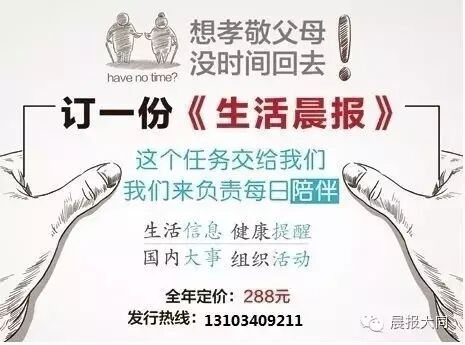 “晨报大同是《生活晨报》为大同新生代读者量身打造的随身新闻源,“晨报大同”整合优质的新闻资讯,提供有影响有深度的新闻媒体服务。做有温度、有态度、最生活的微信公众平台;欢迎社会各界人士的关注。点击上方"晨报大同“↑免费订阅。爆料、合作、投稿