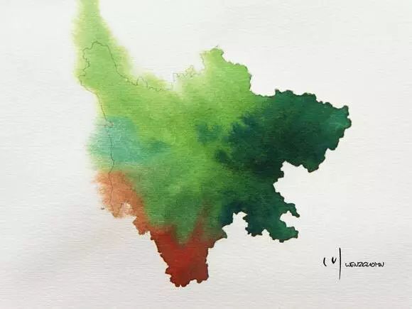 用水墨勾画中国地图,用线条勾勒出各个省市(直辖市)的基本轮廓,再运用泼、吹、晕等多种技巧,将相应颜色填进轮廓中……一边欣赏一边找找你的家乡有多美吧!