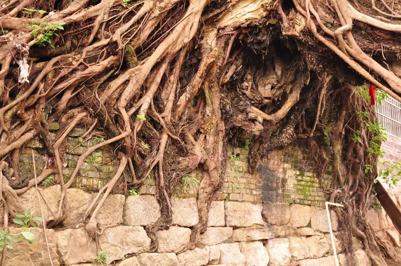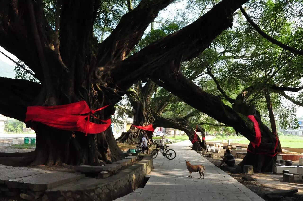 老街不长,笔者又转回到古榕树下,久久注视着树脚下几块闪着幽幽光泽,显然年代已经非常久远的青石板。它们极可能是历代农夫做完农活后休闲的地方,或许,在某一年代,某一次庙会歌节,曾有几对普通的山里小伙和姑娘在这旁边对唱过好听的情歌……