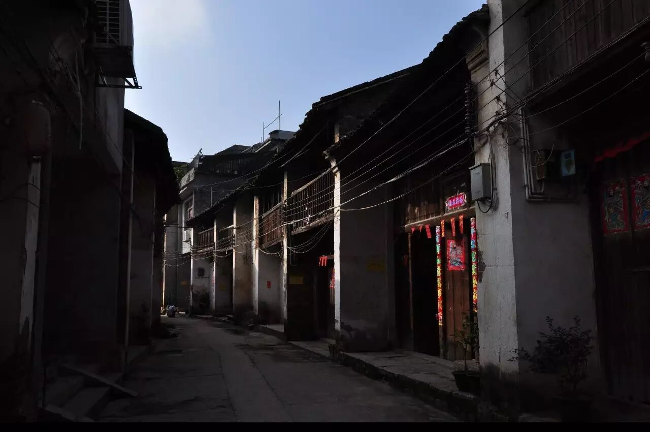 三纵两横的街道,把全镇民居划分六大块。主街内建有4座闸门,其他各小巷共有闸门5道。走进古镇,但见长街深巷,店铺林立,民居青砖黛瓦,飞檐画栋,至今尚存有宋、明、清和民国建筑遗风。这便是南方老街的风范吧,这是别致恬静的古街古巷:长长的,瘦瘦的,弯弯曲曲,整洁悠深;青石路面,风霜打过,阵雨洗过,光滑、闪亮。