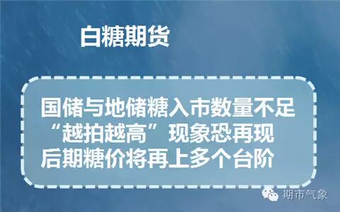 另外,国储与地储糖的抛售是循序渐进的。从前期国储与广西地储糖先后进行竞价销售的情况来看,入市数量不足,“越拍越高”的现象估计会再现,后期糖价将再上多个台阶。