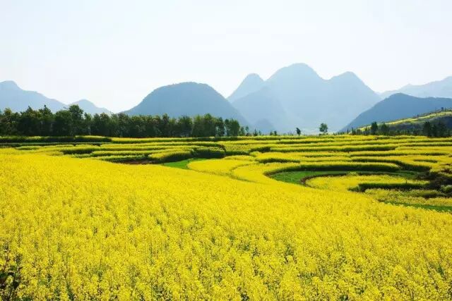 在泥土清新,花香四溢的罗平油菜花田里徜徉。