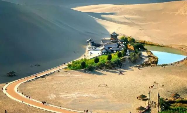 在一望无际的甘肃戈壁,找寻天下奇观月牙泉。