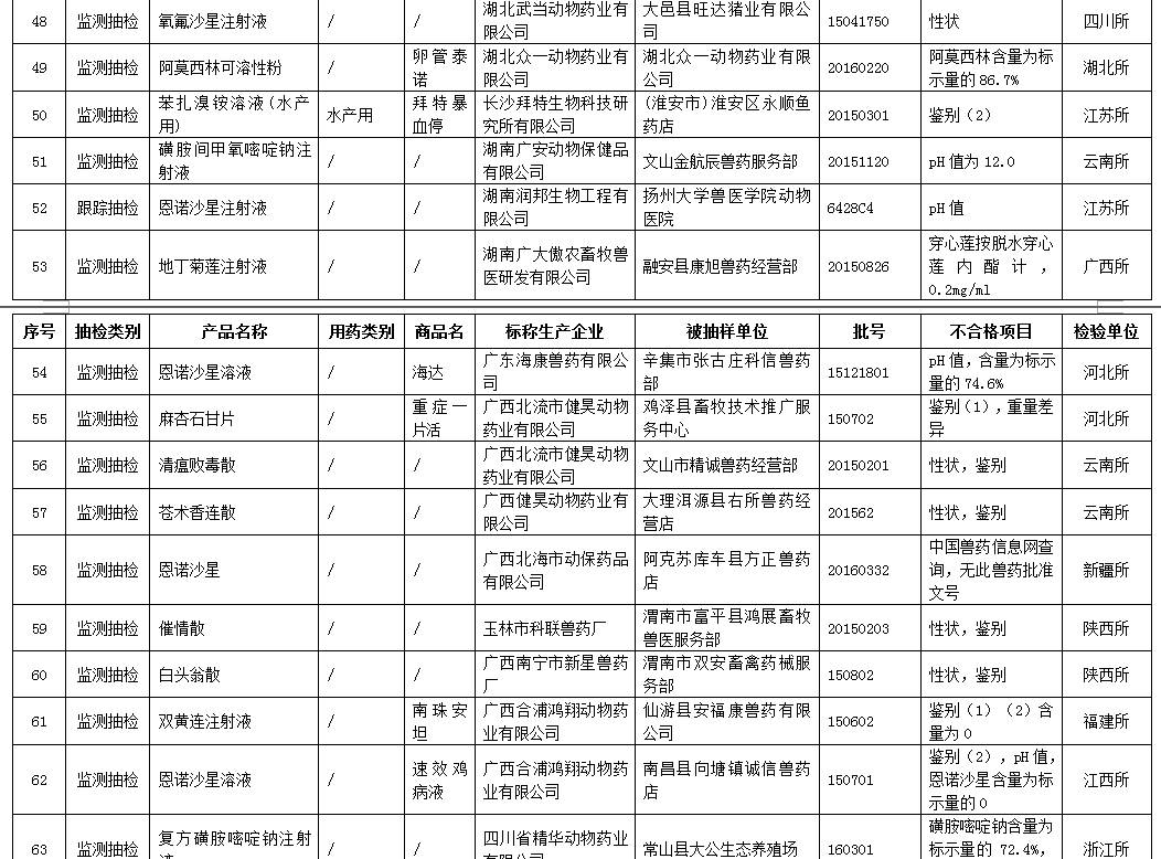 2016年第三季度兽药抽检合格产品相关信息,请登录“中国兽药信息网”的“国家兽药基础信息查询系统”查阅。