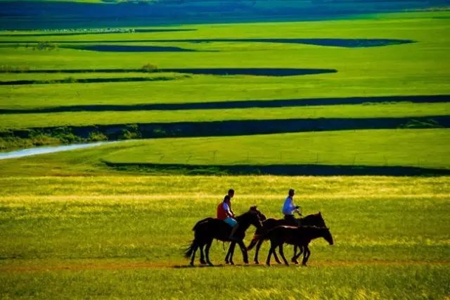 在一望无际的呼伦贝尔草原上策马奔腾。