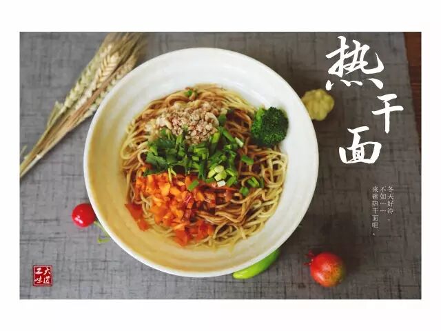 “热干面”与“山西刀削面”、“两广伊府面”、“四川担担面”、“北方炸酱面”并称为中国五大名面,是颇具武汉特色的小吃。热干面是武汉最著名的食物之一,是武汉人生活中不可分割的一部分,并成为他们心目中在全国的小吃代表中占有一席之地的武汉食物代表。面条纤细根根有筋力,色泽黄而油润,滋味鲜美。拌以香油、麻酱、虾米、五香酱菜等配料,更具特色。