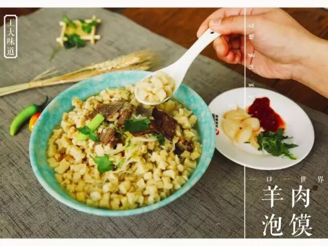 羊肉泡馍,古称"羊羹",西北美馔。北宋著名诗人苏轼就有"陇馔有熊腊,秦烹唯羊羹"的诗句。它烹制精细,料重味醇,肉烂汤浓,肥而不腻,营养丰富,香气四溢,诱人食欲,兼具荤素,有干有汤,最大程度满足吃货们的愿望。火速收藏,要不明儿中午就去来一碗?