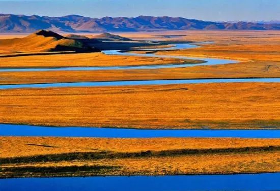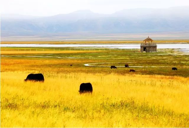 相比春夏,尕海的秋季似乎才是一年四季中最美的,草木枯黄的尕海草原,在水天一色中显得格外平静温柔,湛蓝的湖面上倒映着连绵的山脉,在夕阳的余晖下又像油画般浓重。