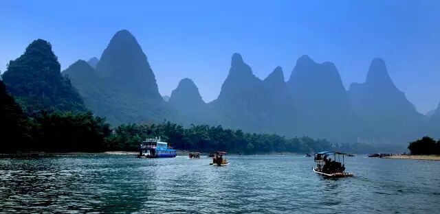阳朔的漓江绵延100多公里,乘舟飘荡,阳朔就如同随一轴画卷徐徐展开,沿途的奇峰翠竹让人目不暇接。