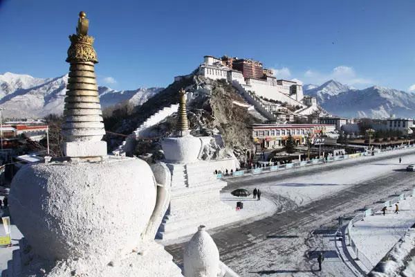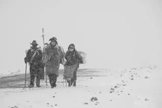 在朝圣路上,信徒仍然转着经轮,不畏风雪。心中有信仰的人,寒冬的雪永远不会成为阻碍,因为相信,所以存在!