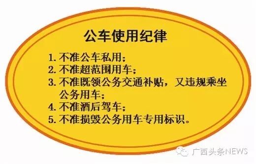 目前,广西财政厅已制作了专门的公务用车标识车贴,车贴为黄色,正面印有车辆编号和举报电话,背面印有5条公车使用纪律。