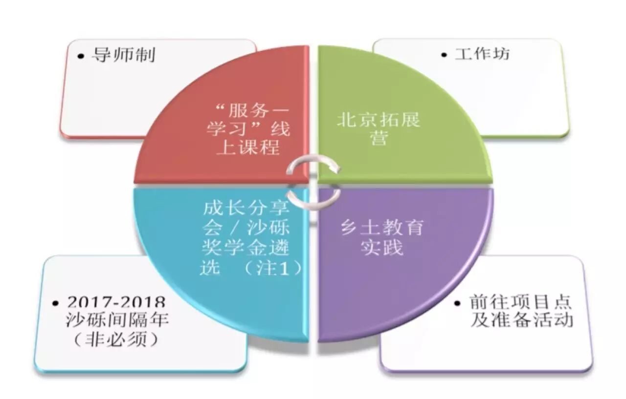 沙砾计划是由北京市银杏公益基金会发起的青年人才培养计划。它提供为期一年的培训与实践机会,让关注社会、愿意发现自己、敢于行动的大学生深入到公益组织和互联网创新领域,亲身触摸,直面社会的各个层面与真实议题,磨练自己的意志,拓展自己的视野,为人生积累宝贵的财富。