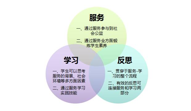 提倡将理论学习与实践经验通过服务和反思的方式结合