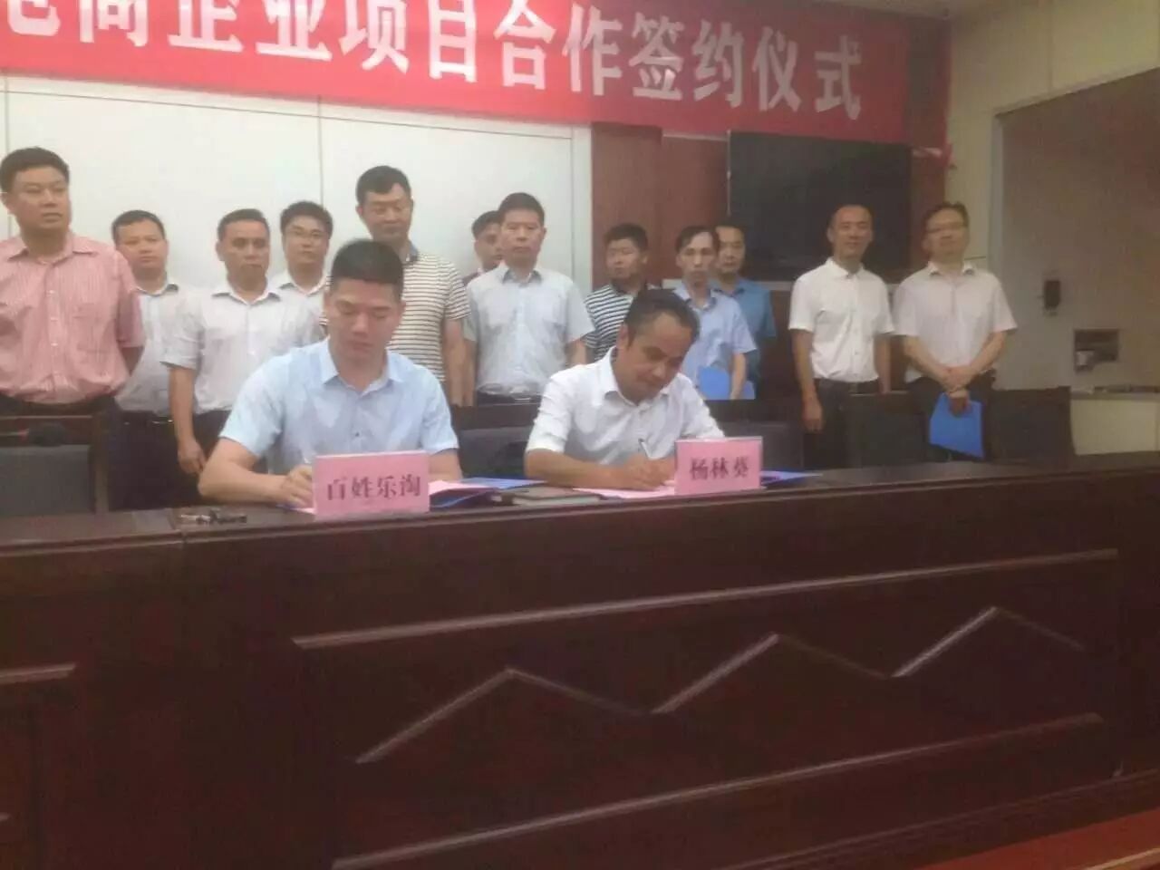 《百姓乐淘董事长樊远飞与平乐政府签约》