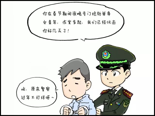 在春节期间,边防官兵“春节不打烊”,我们熟悉的“铁臂哥”再次带领战友们破获系列抢劫案8起,有效维护了辖区的和谐稳定。下面,请跟随“铁臂哥”系列漫画,看“铁臂哥”如何抓获犯罪嫌疑人,破获系列抢劫案。