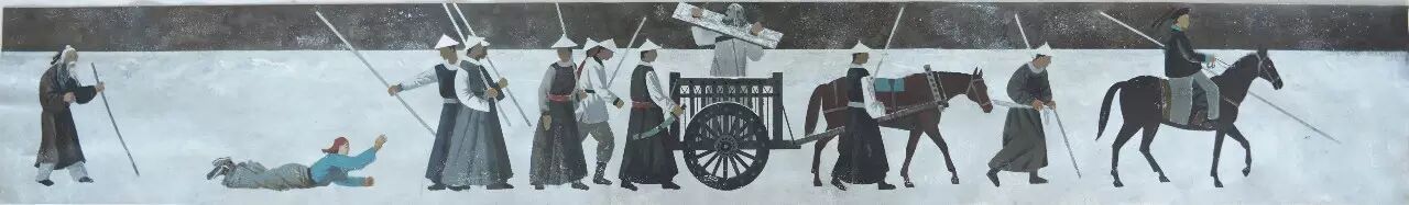 2014 年作品《迎亲图》、《囚途》、《遛鸟图》、《包公审案图》以及两幅人体油画均被列宾美院留校收藏