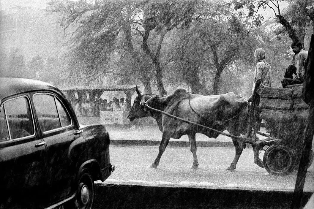 拉古·瑞尔 Raghu Rai:INDIA. Delhi. Monsoon downpour, Bahadur Shar Zafar Marg. 1984.