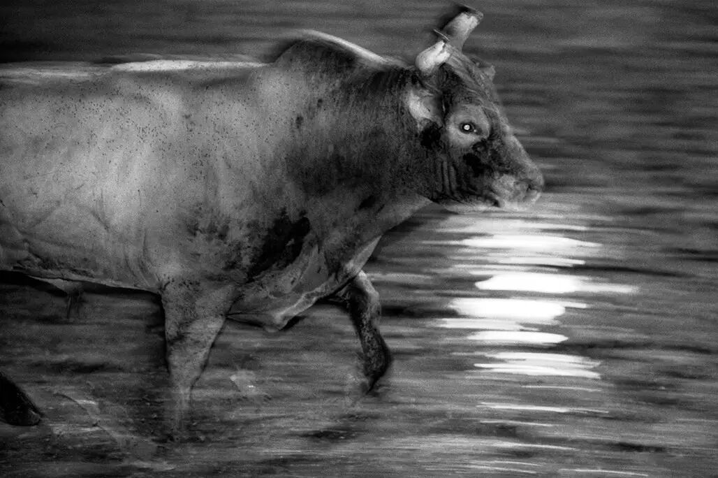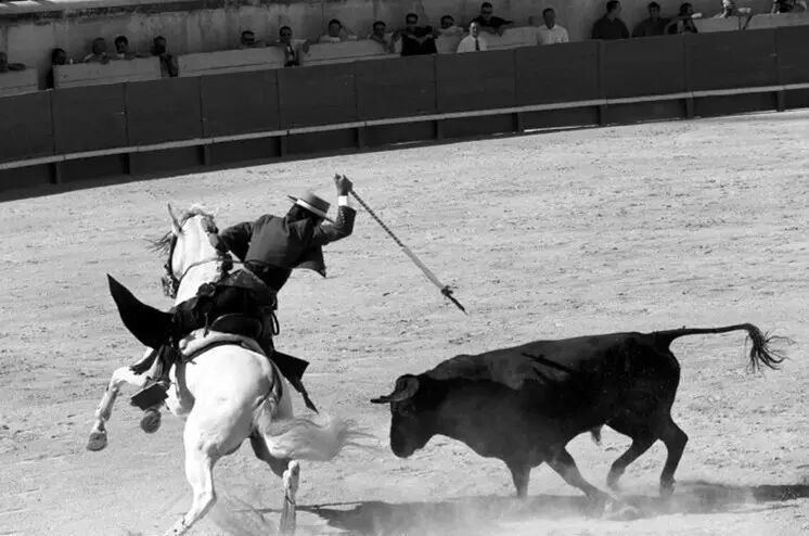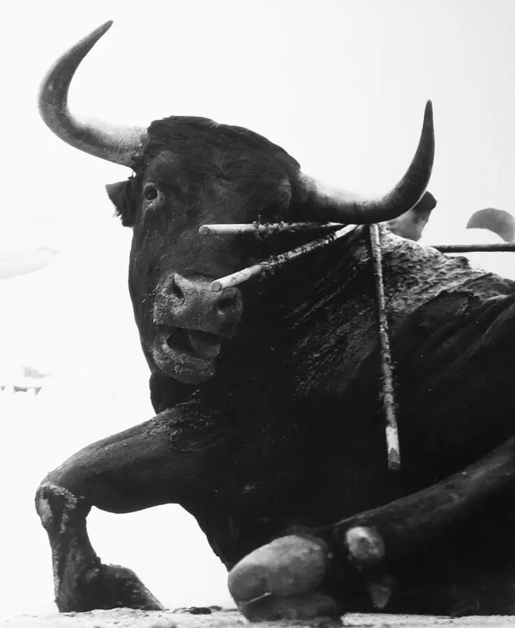 吕西安·克莱格 Lucien Clergue:Sortie du taureau, Arles, 1957.