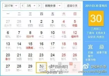 好消息!据悉,2017年“壮族三月三”放假时间正式确定,经周末调休后与清明假期连起来达到6天,3月30日-4月4日放假。广西人民将拥有一个堪比春节假期的小长假桂林人民嗨起来!