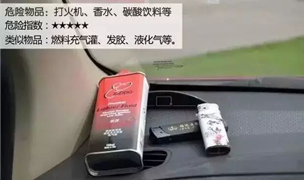 炎炎夏日,抽烟的司机经常会在车里放置打火机、香水和碳酸饮料等物品。一经太阳暴晒,车内气温会迅速上升,一旦与车内一些油料、易燃物质接近,很容易引发火灾。所以这类物品都应避免放置在高温、阳光直射的地方,若已放置,也要放在车内阴凉的地方。