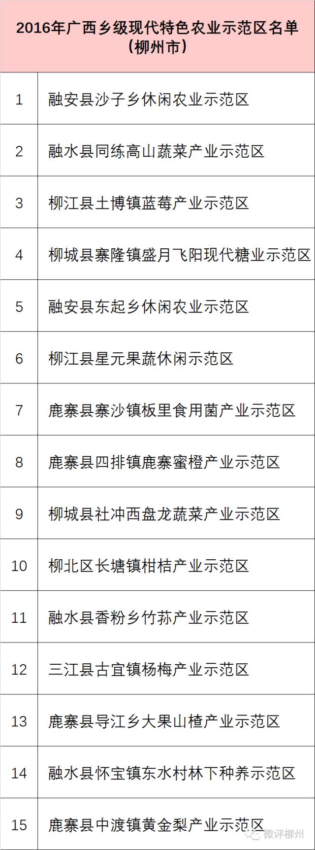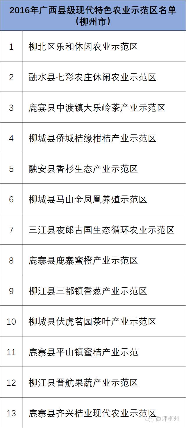 11月29日,广西现代特色农业示范区工作厅际联席会议办公室公布了2016年广西县级、乡级现代特色农业示范区名单。柳州市28个示范区位列其中,还将获得政府派发的“大礼包”,来看看有你家乡的吗?