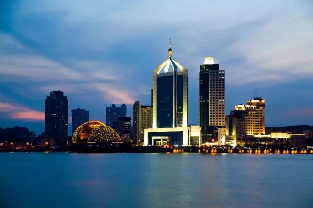山东青岛的夜景。作为中国最有名气的海滨城市之一,青岛有着世界上最长的跨海大桥——胶州湾大桥。三面被海环绕,现代化的青岛被视为中国最宜居城市之一。青岛市还有许多异国风情建筑,是德国和日本殖民时期遗留下来的。
