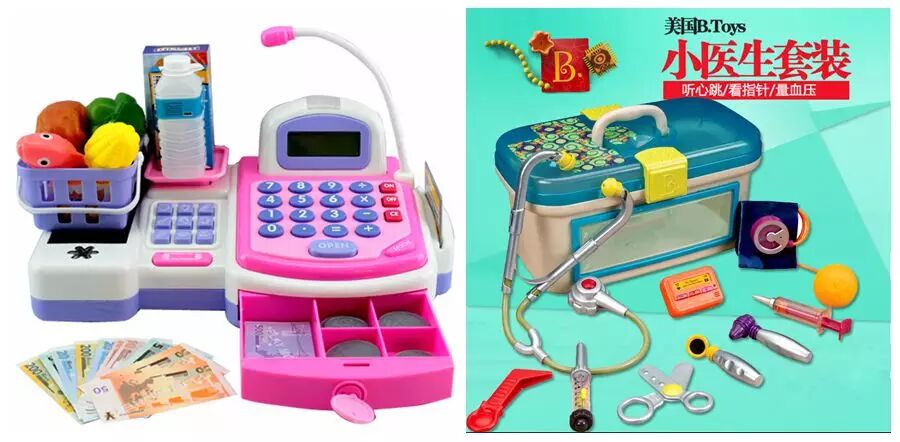 电话机、小扫帚、吸尘器、魔幻厨房、收银机、小医生,各种仿真类过家家玩具,都是1岁以上宝宝热衷的“学样”利器。当你发现孩子总是抢你的扫把、拿家里的电话,就可以考虑买些“过家家”的小玩意啦!